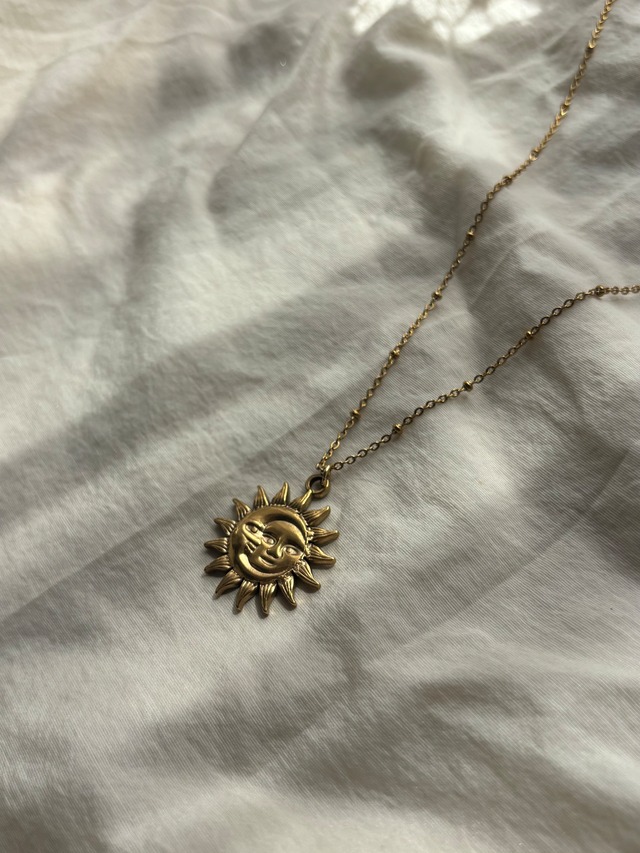 【Cloudy then sunny】 アンティーク感のあるサンモチーフで、コーデに明るさを添えるデザイン 小ぶりだけど印象が強く、デイリーのワンポイントに最適。曇りのち晴れのように明るくポジティブな気持ちにさせてくれるアイテムです。 【サイズ】チェーン 50cm 【素材】necklace:stainless charm:合金 【色味】Gold necklace