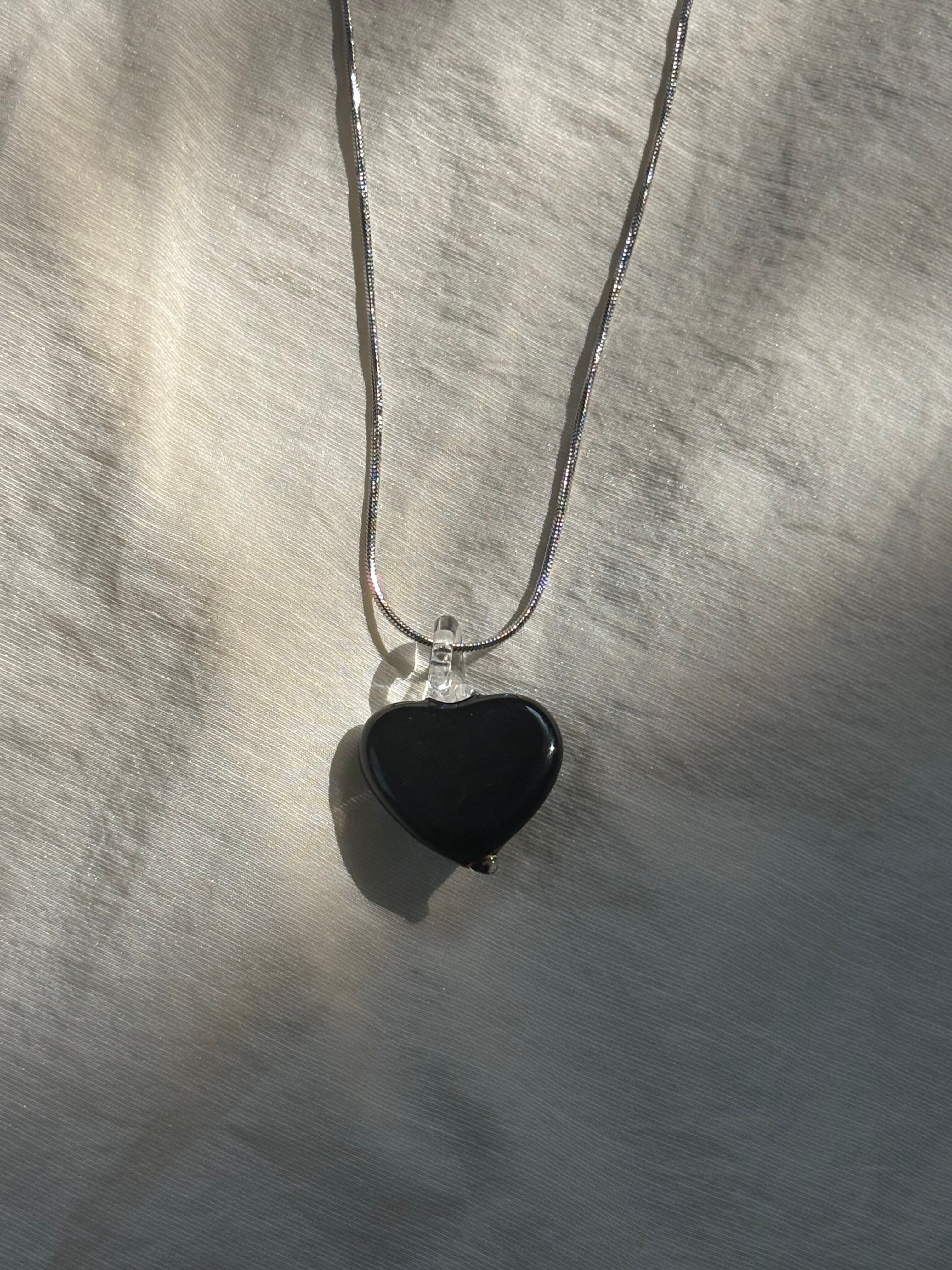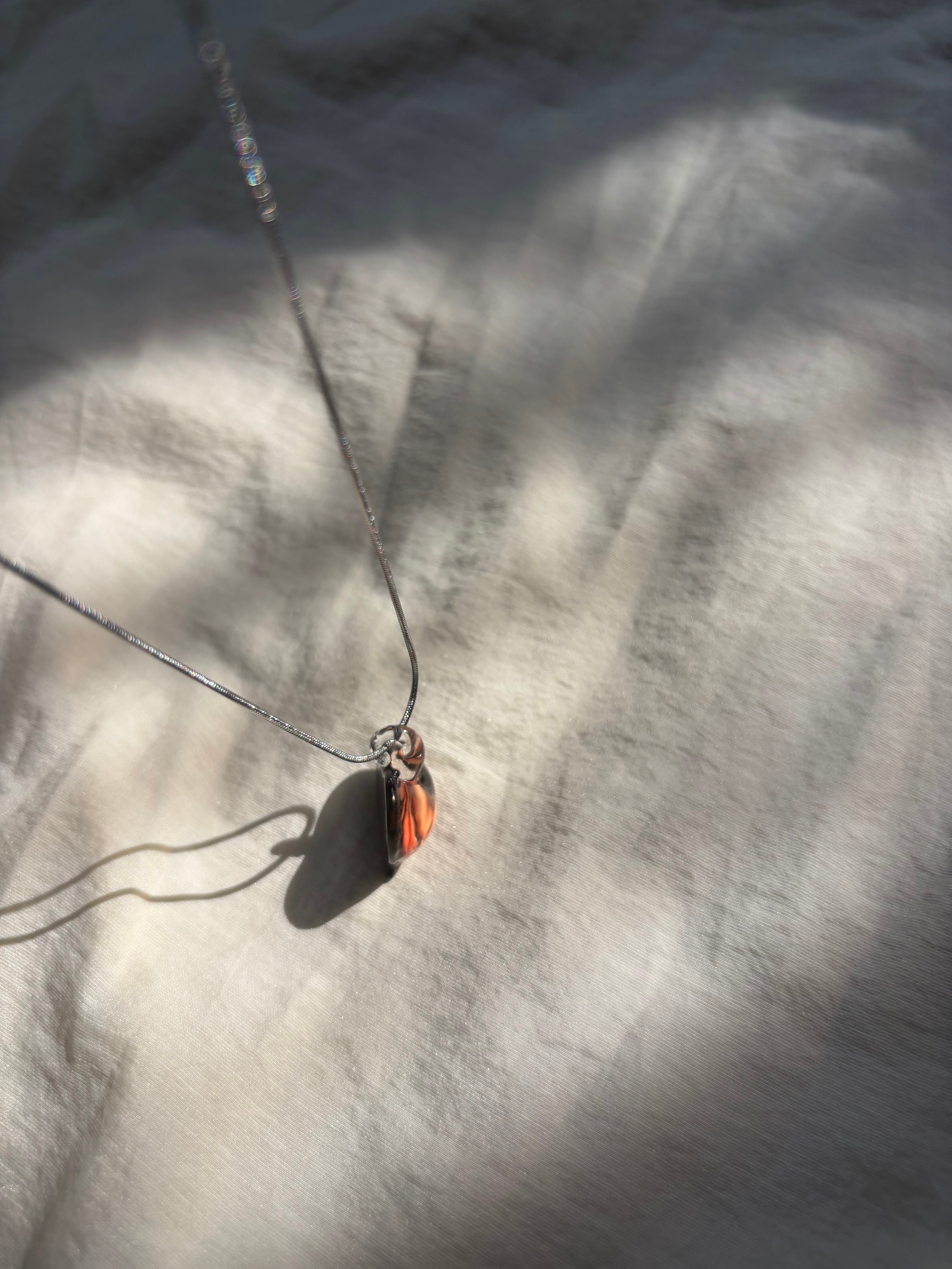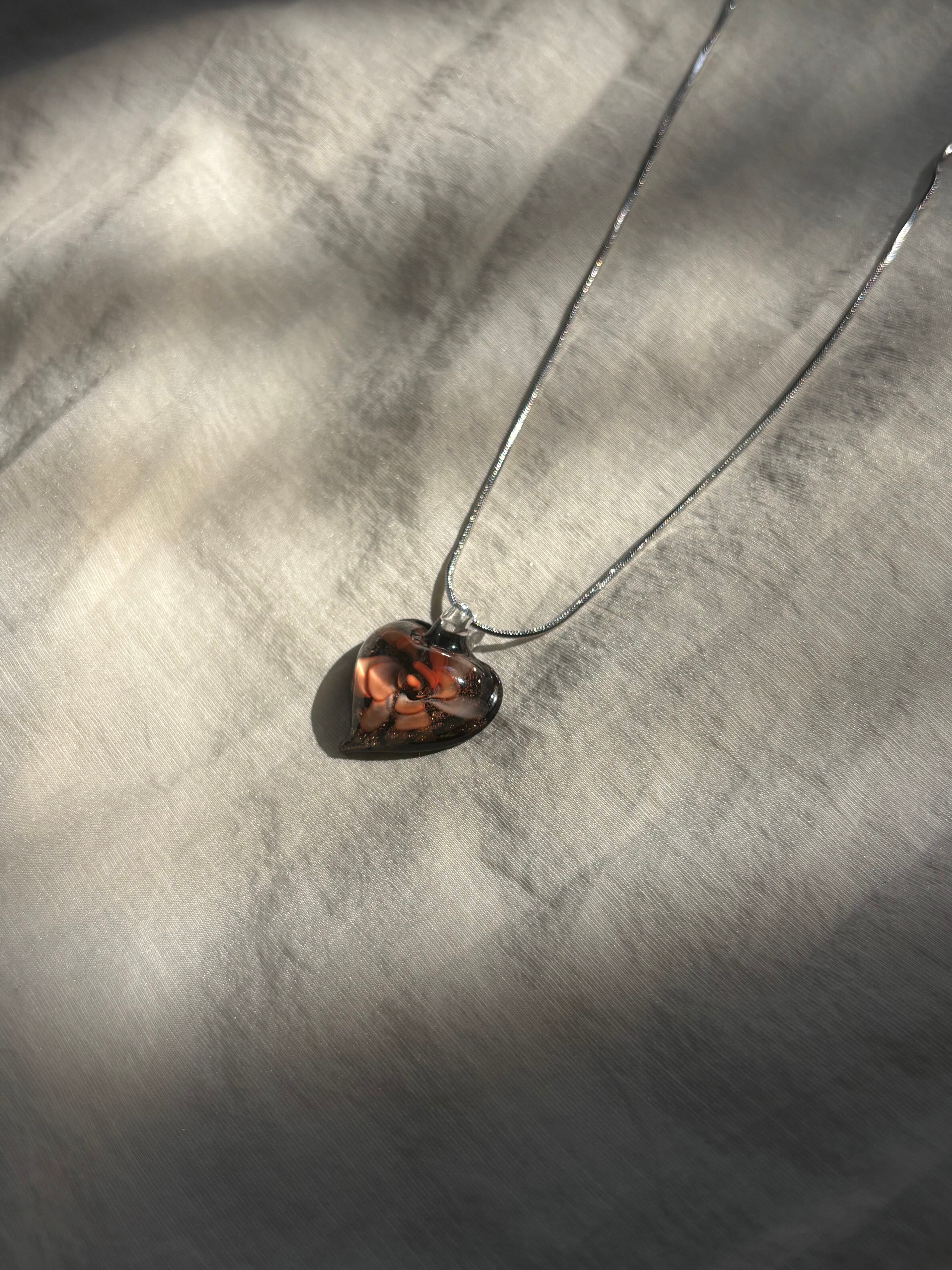 透明度のあるランプワークチャームを使ったガラスネックレス。