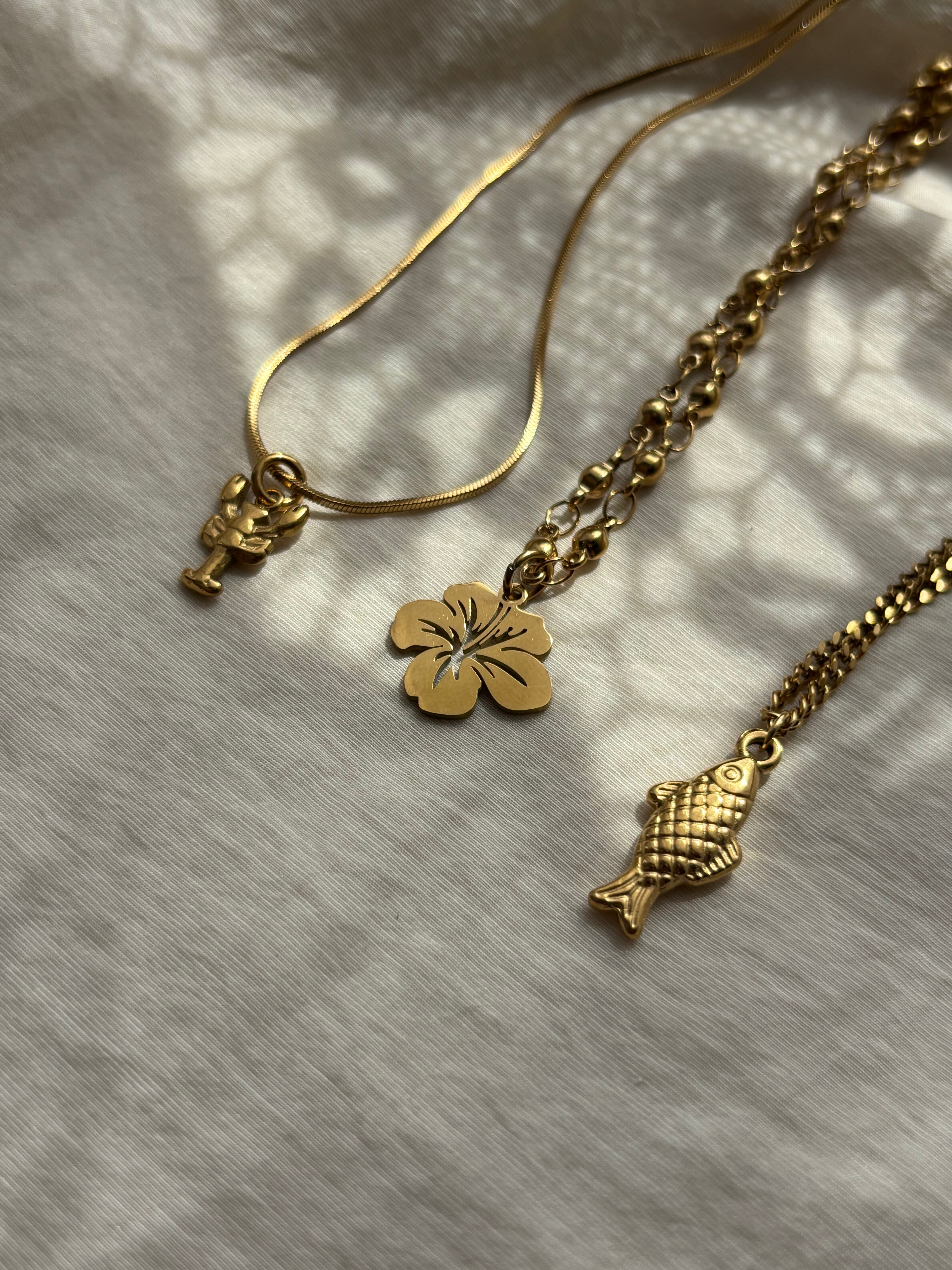 見た目の存在感はありつつも、軽やかな素材で首元に負担をかけず、さらっと身につけられるアイテムです。