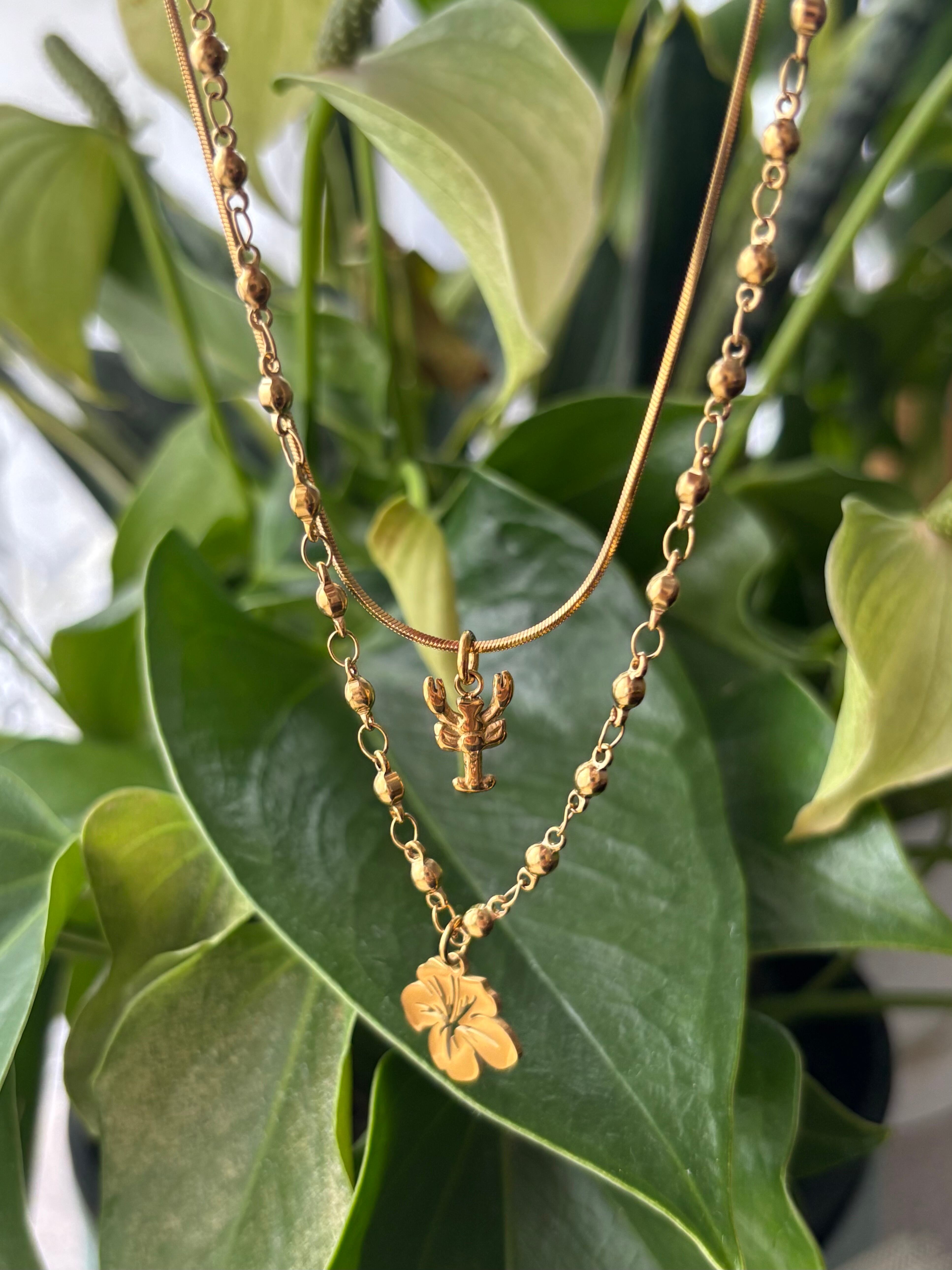 ミニロブスターチャームが可愛いアイテム。他とかぶらないユニークなアイテムです。同じゴールドカラーのネックレスとジャラ付けもお勧めです。