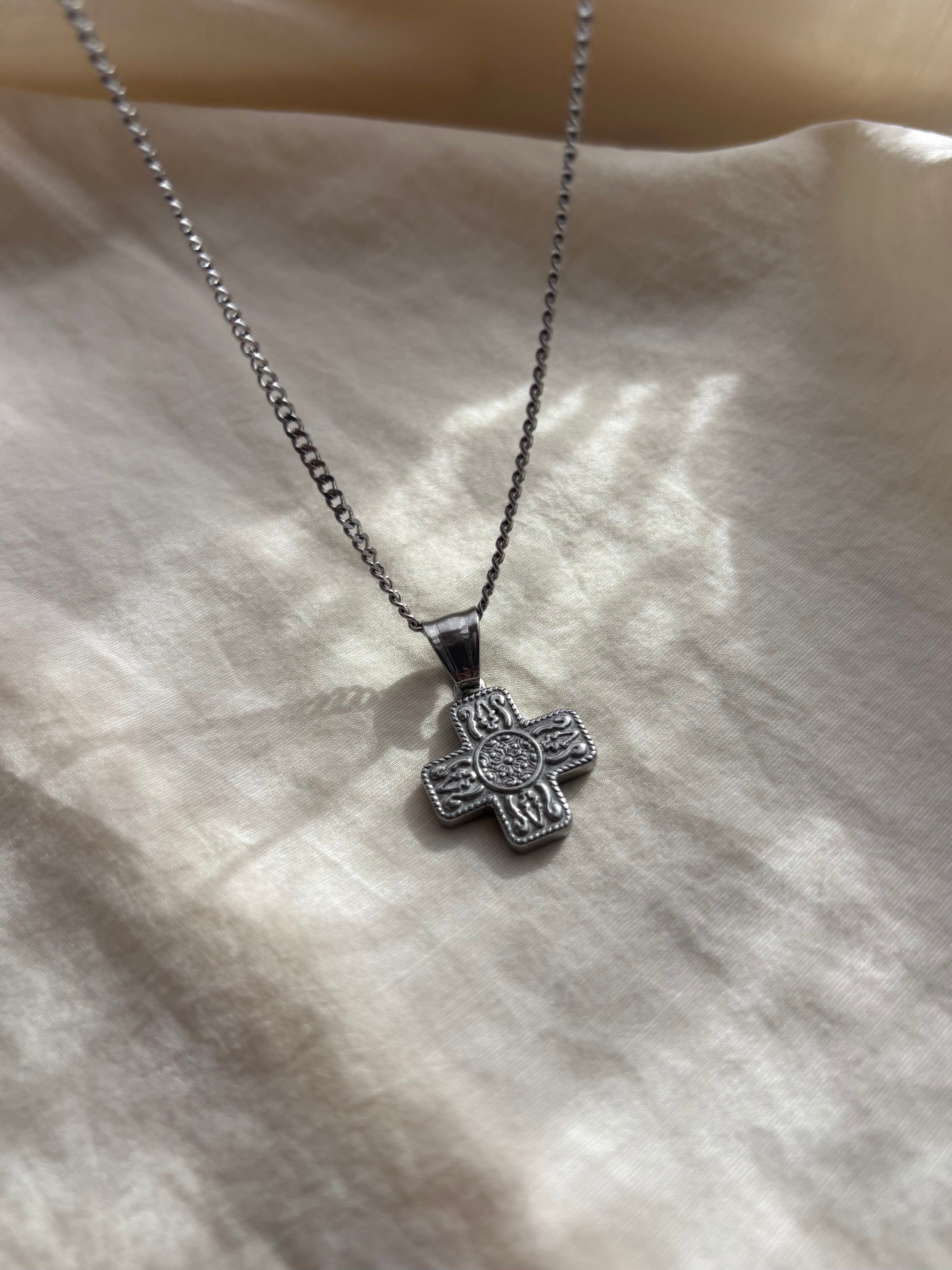 クロスデザインは「守る」「導く」意味を持ち、お守りのギフトにもおすすめ。
