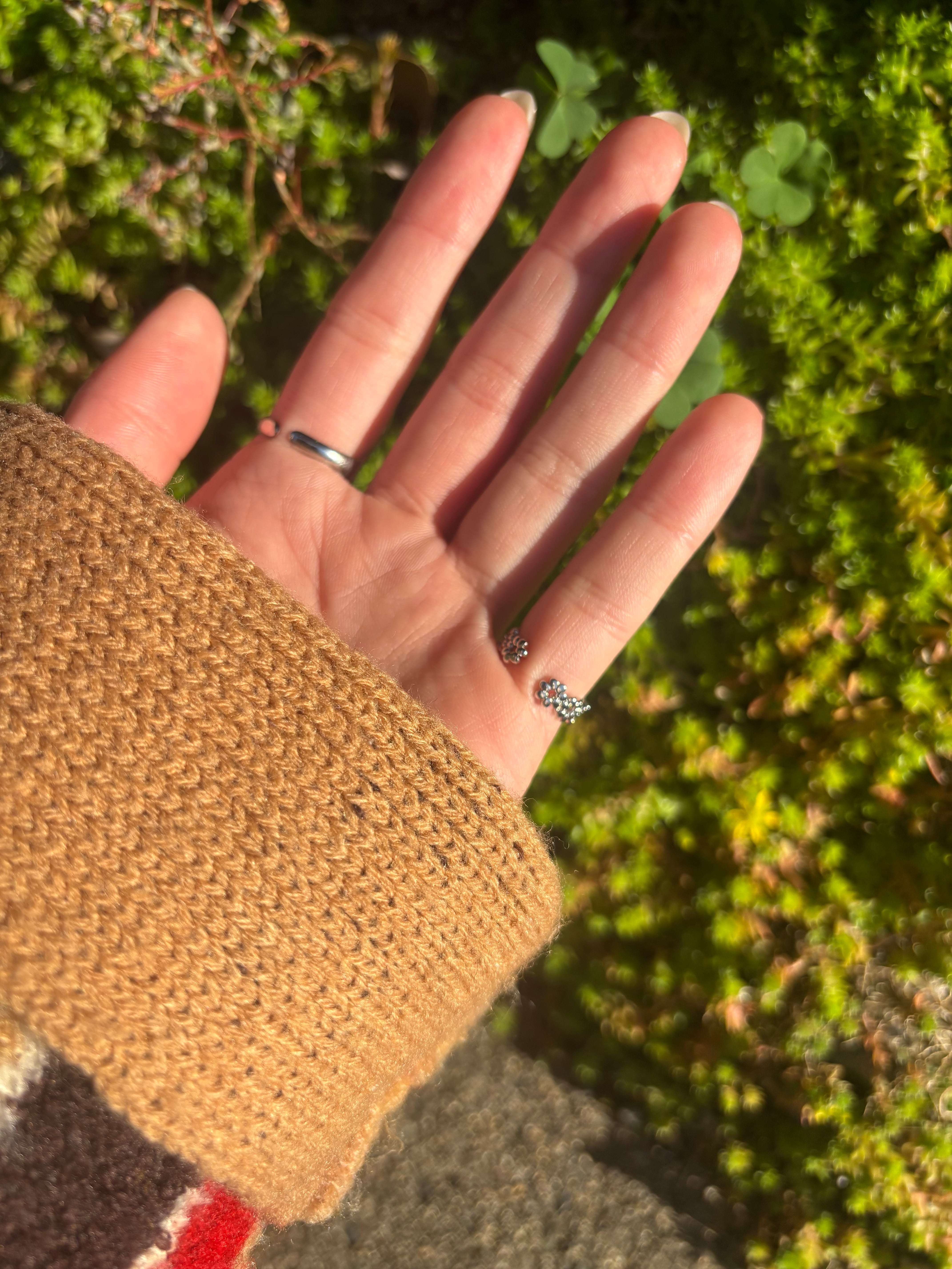 オープンリングで力を加えるとサイズ調整ができます。お好きな指に小花が連なる繊細デザインを。