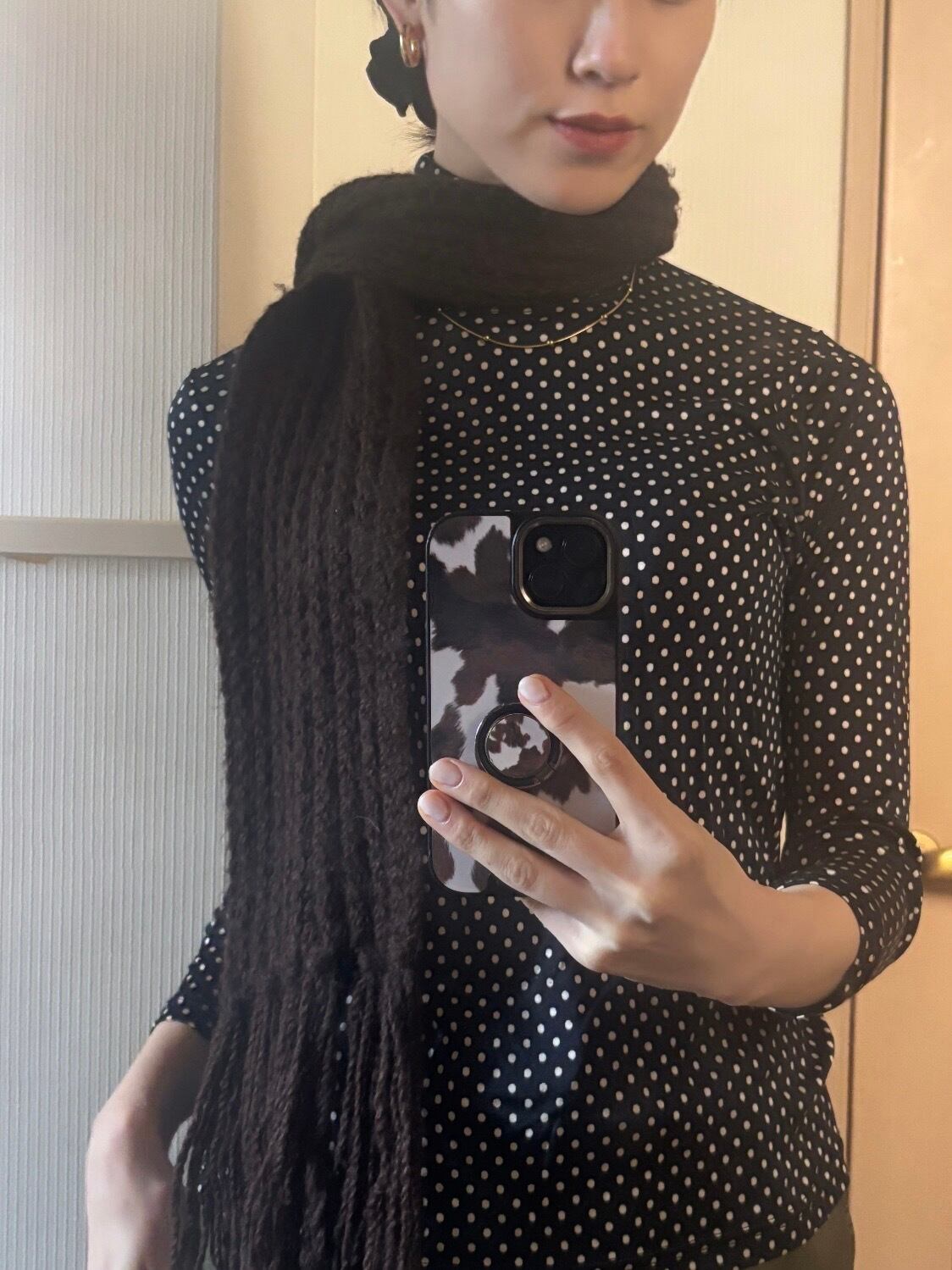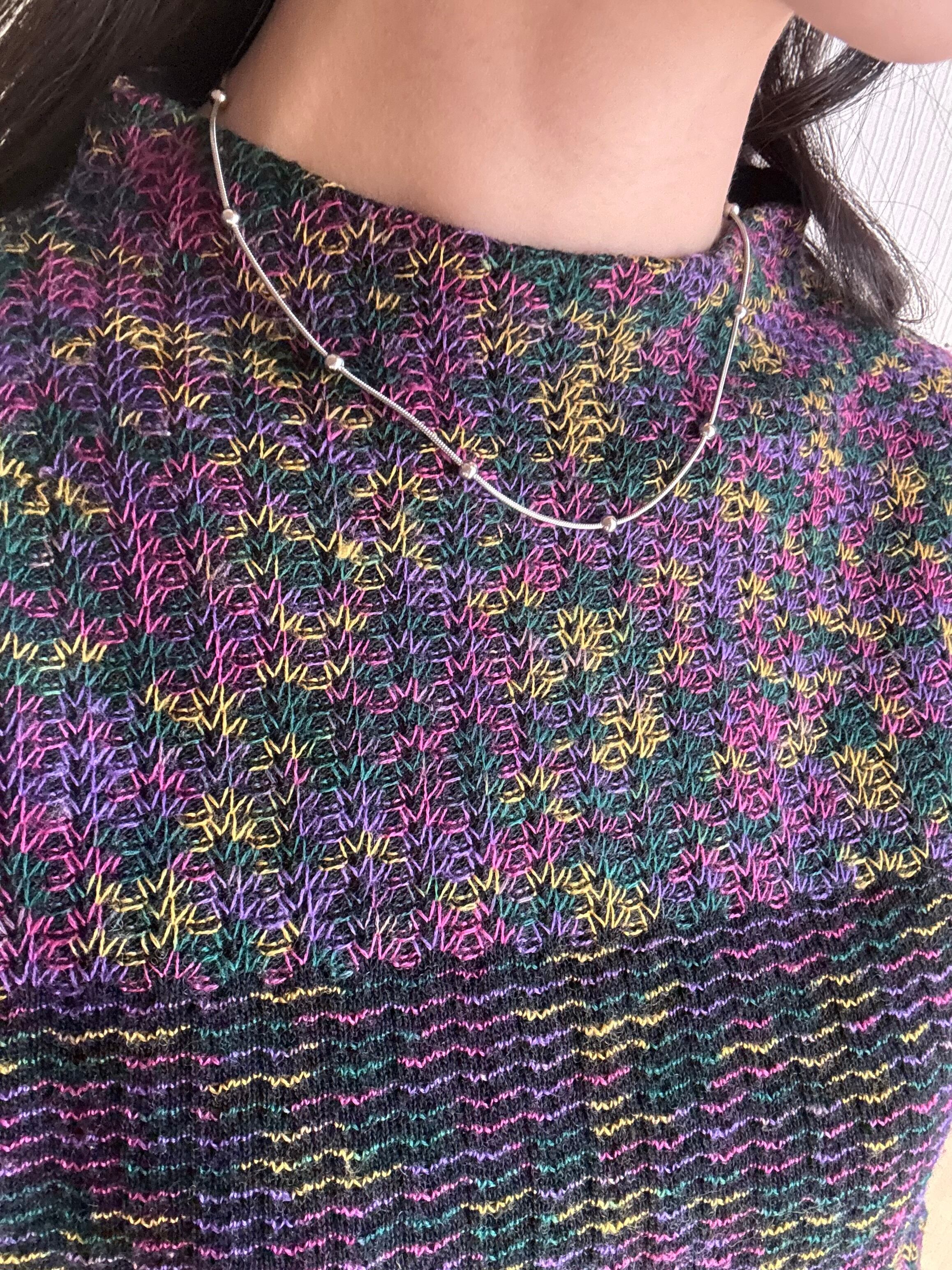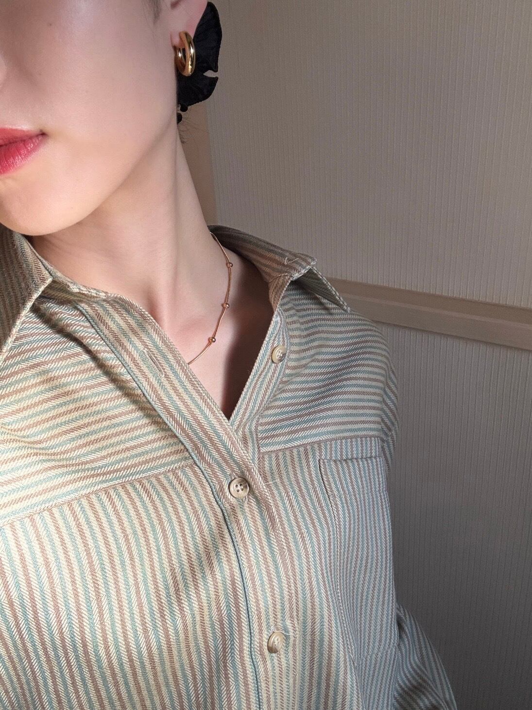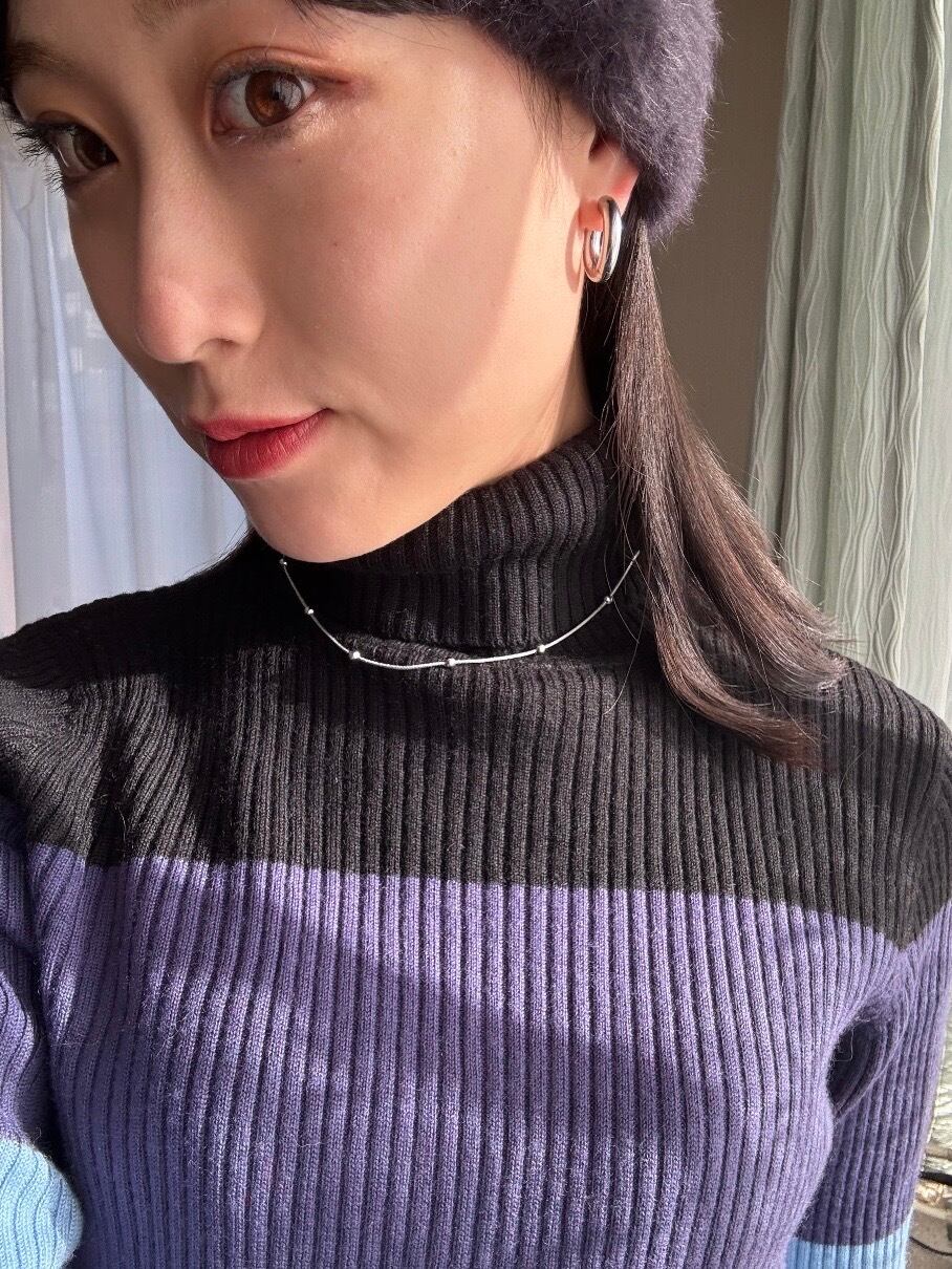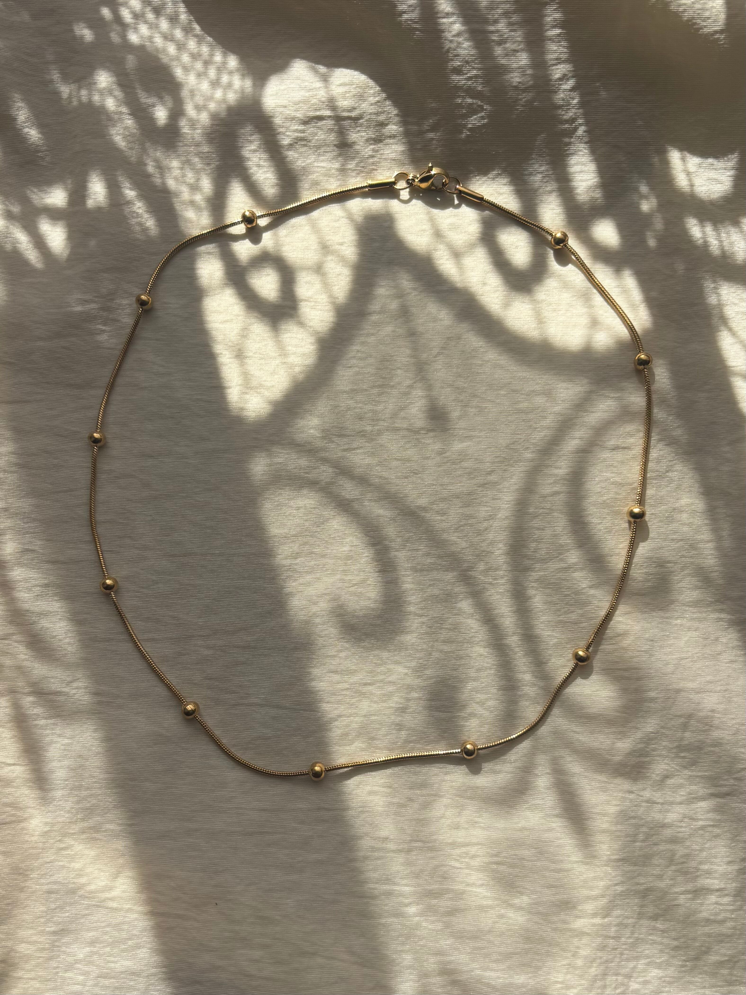 スネイクチェーンのなめらかなラインに、等間隔の粒がアクセント。シンプルすぎず、でも主張しすぎない絶妙なバランスで、首元をきれいに見せてくれます。
