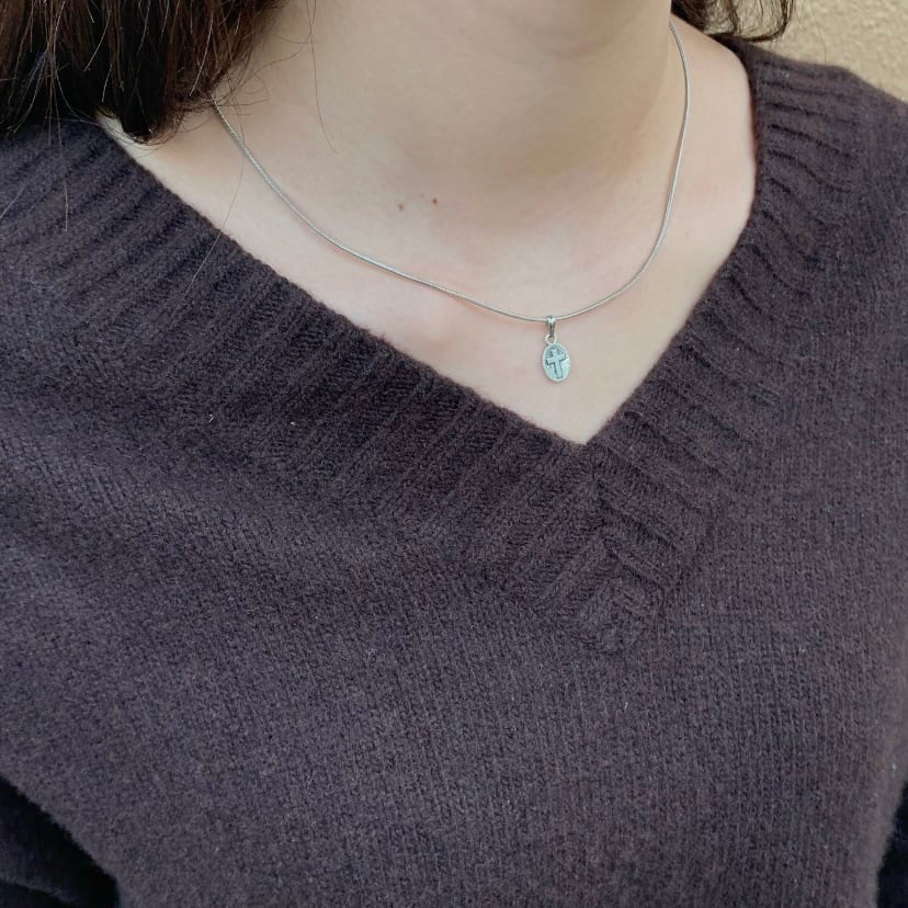 上品なスネークチェーンに小さめなクロスチャームがポイントのネックレス。
