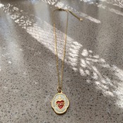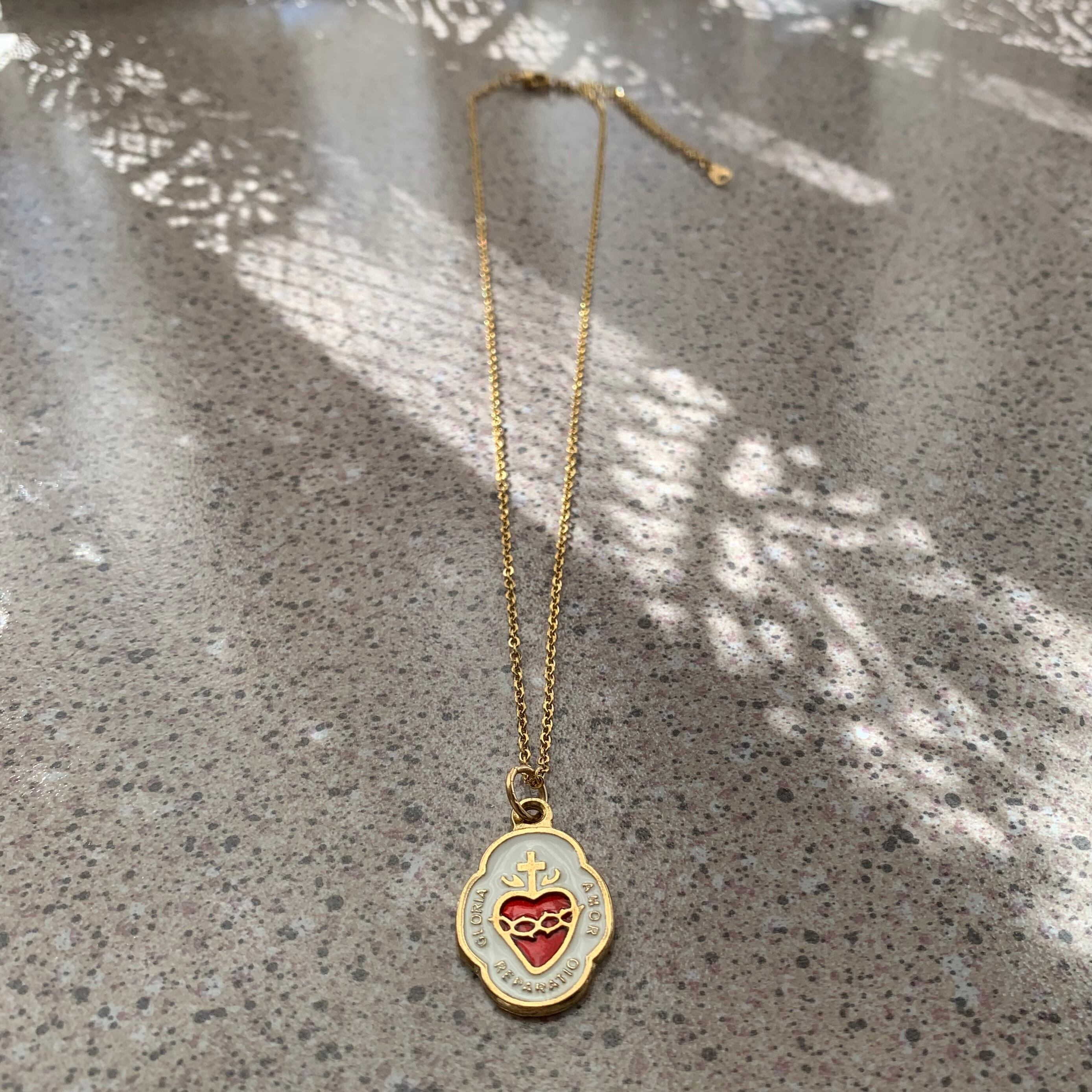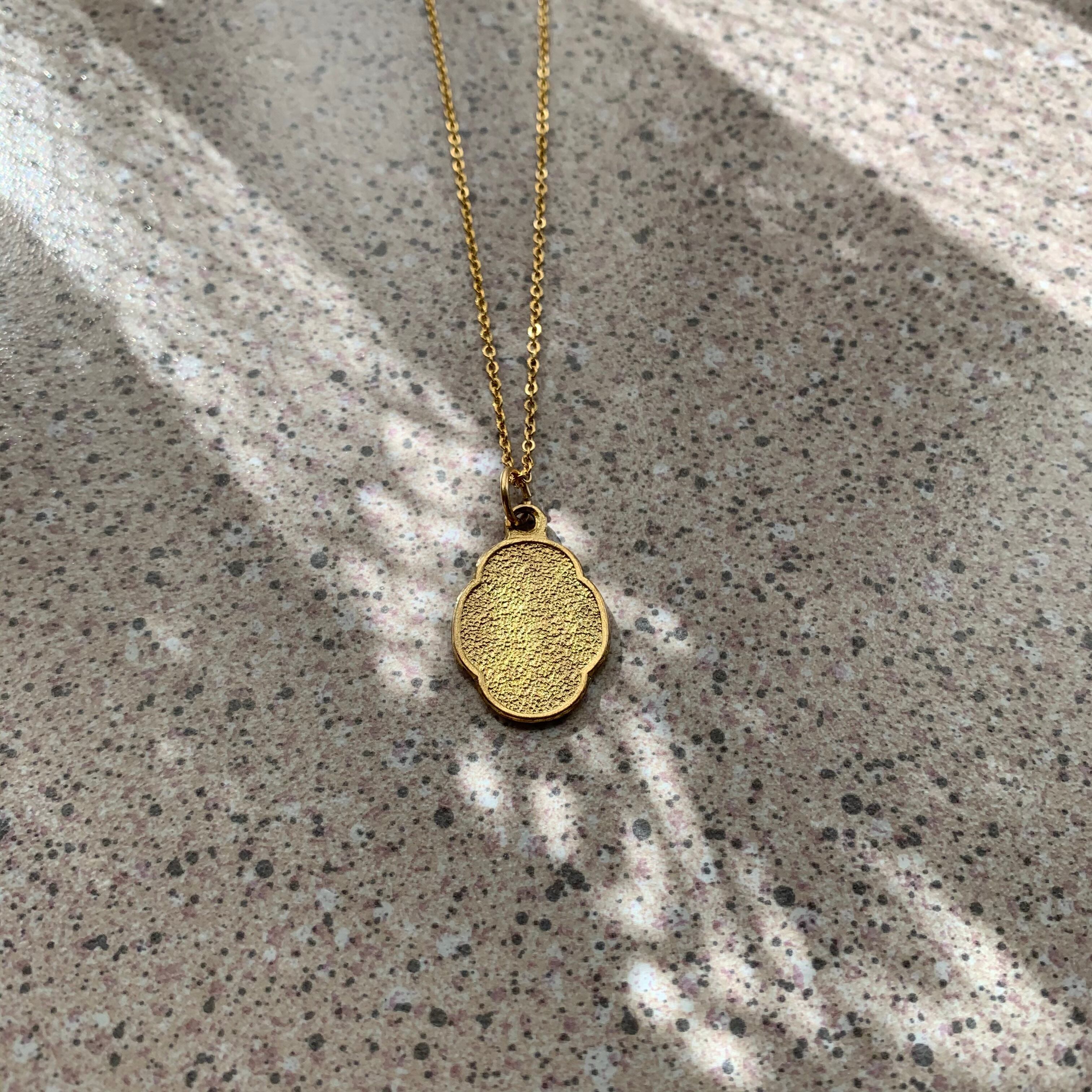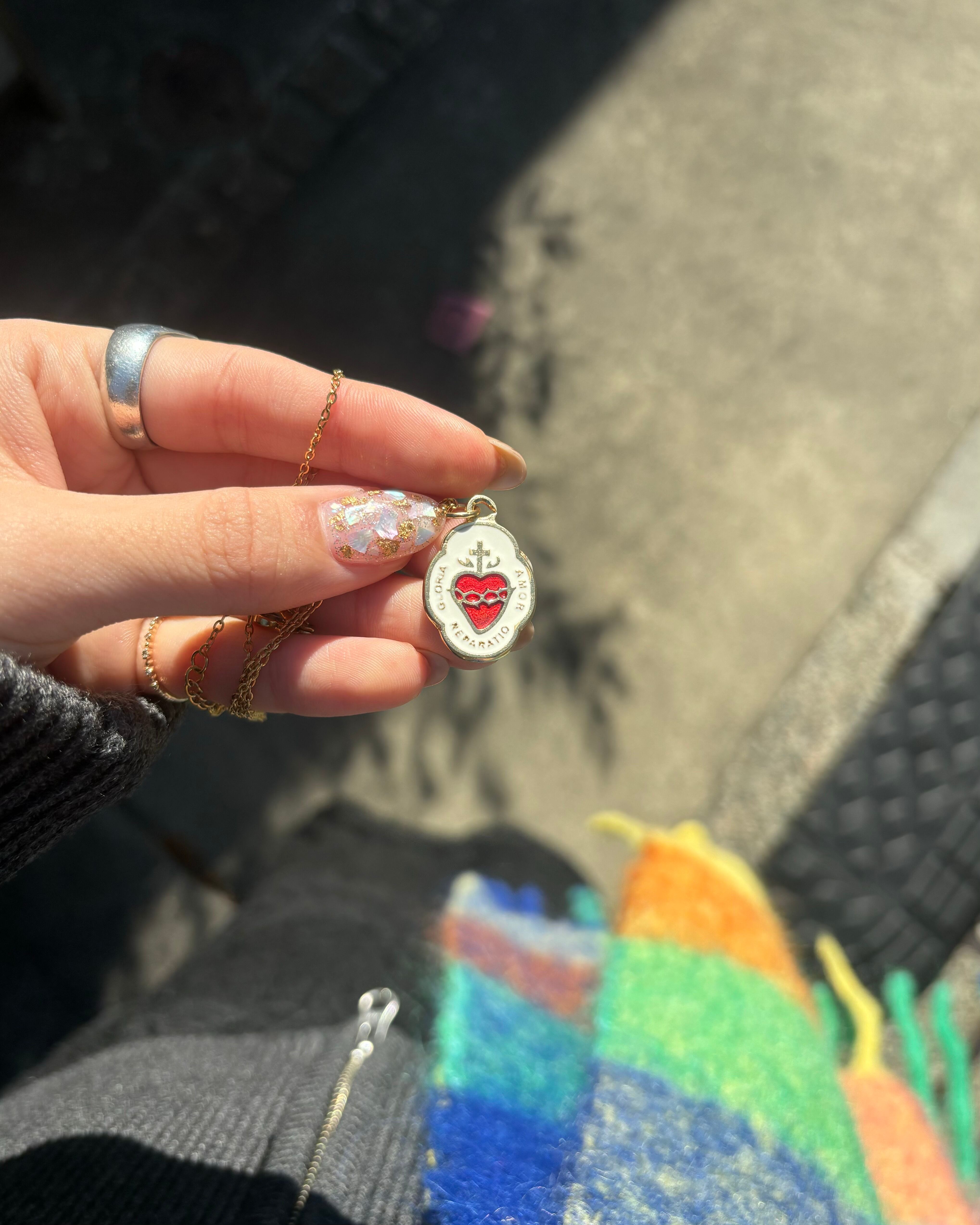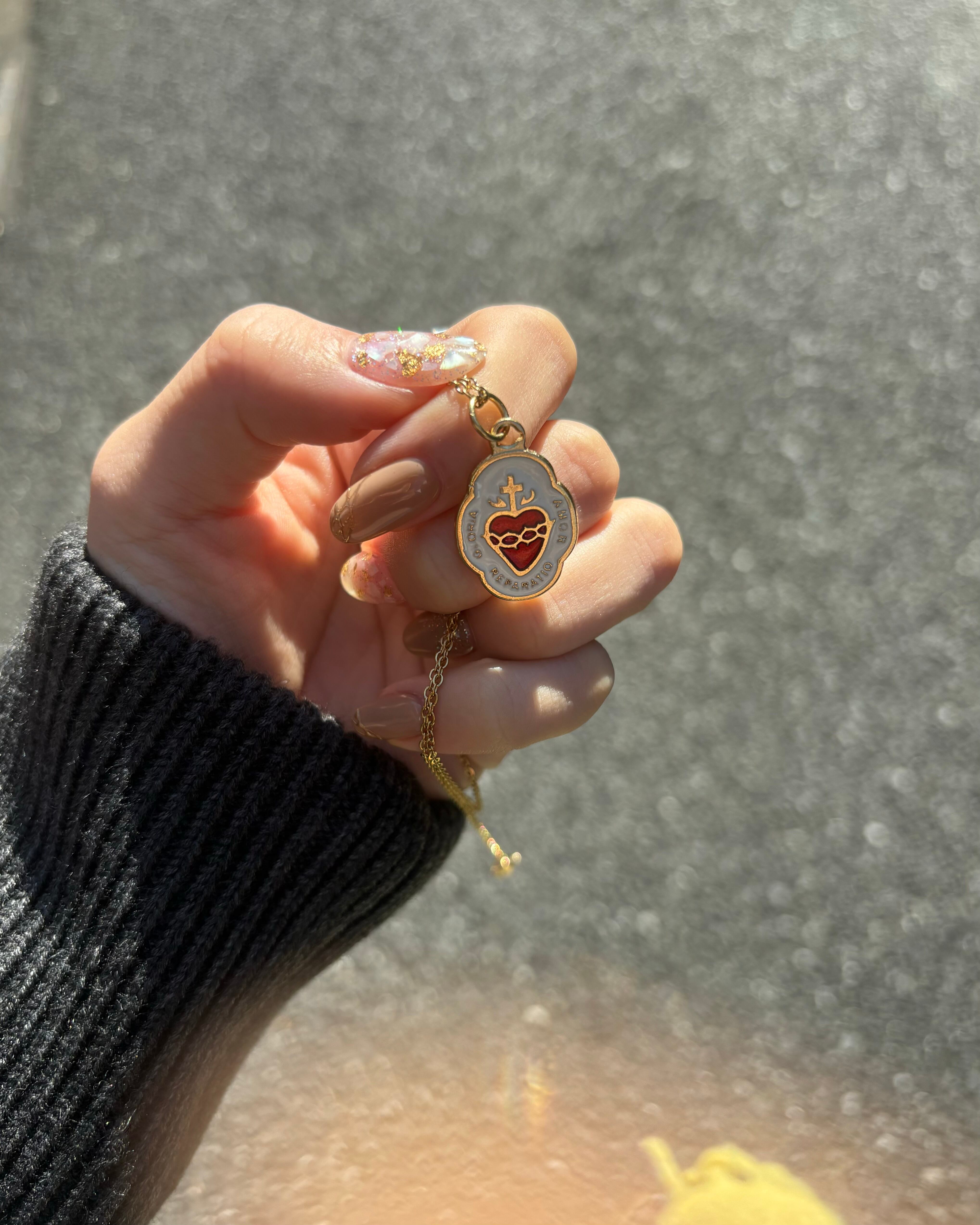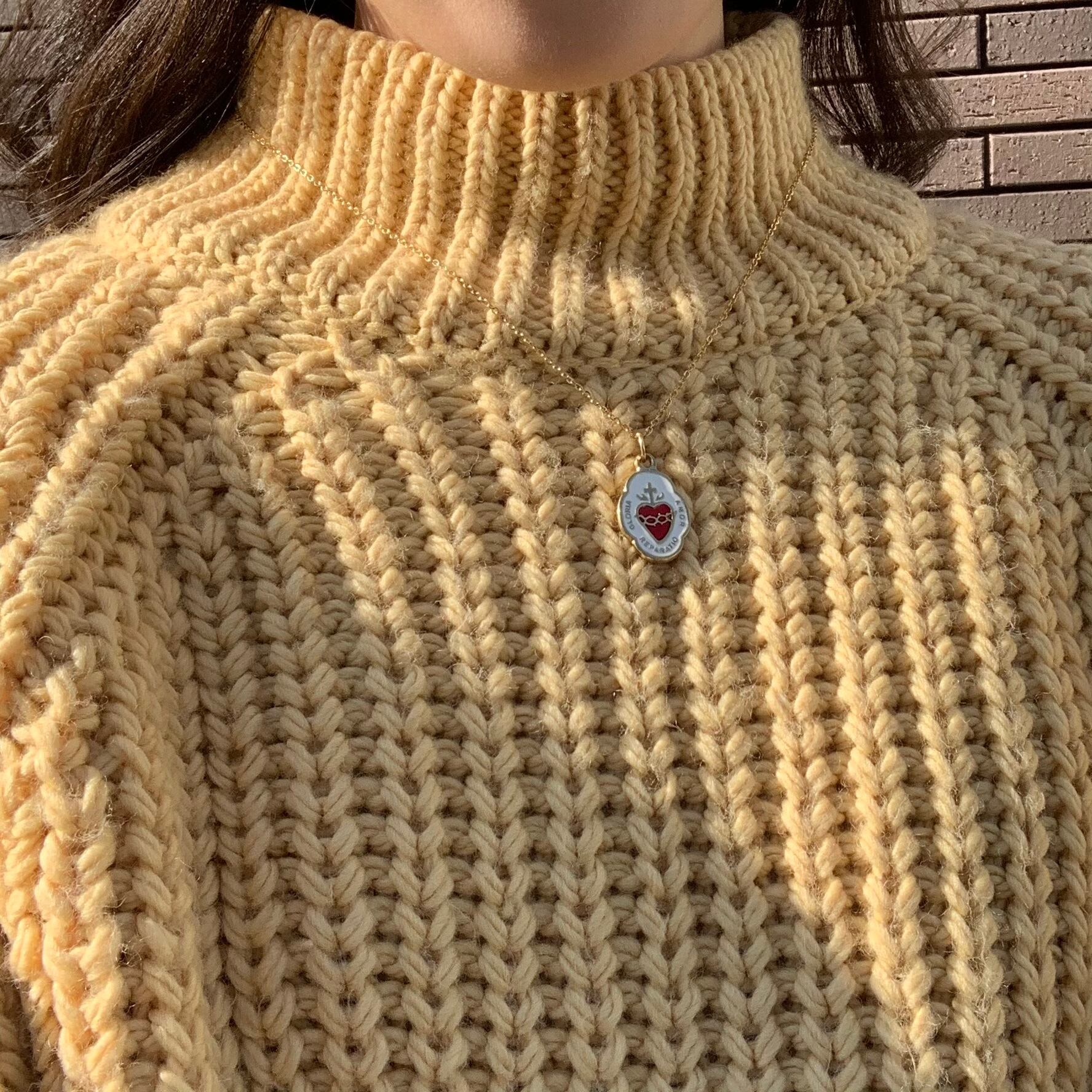大きめの存在感があるメダイです。あえてカラフルなスタイルと合わせるのがオススメ!
