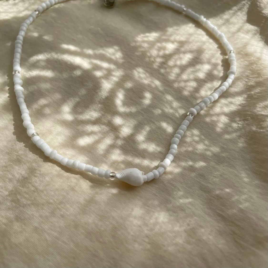 貝のチャームがポイントで、お守りとして身につけて頂きたいアイテムです。