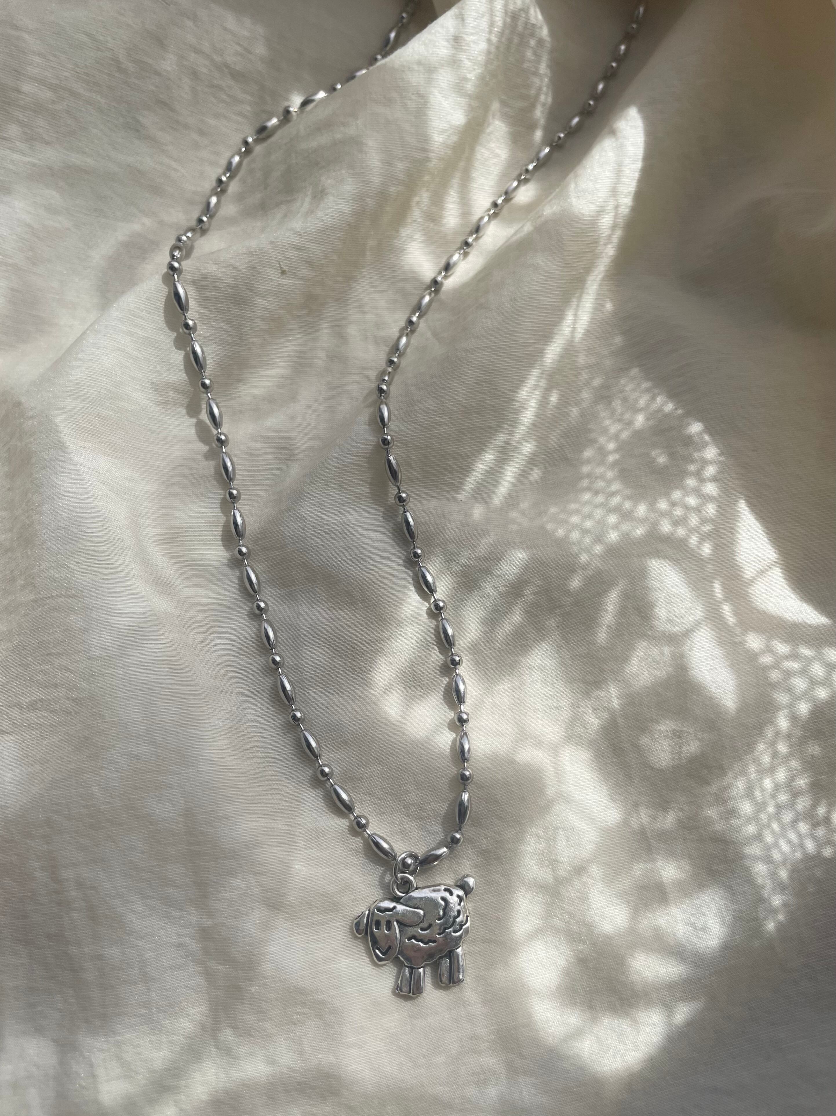 可愛らしい羊のチャームがポイントのネックレスです。ゆるいお顔に癒されて下さい〜