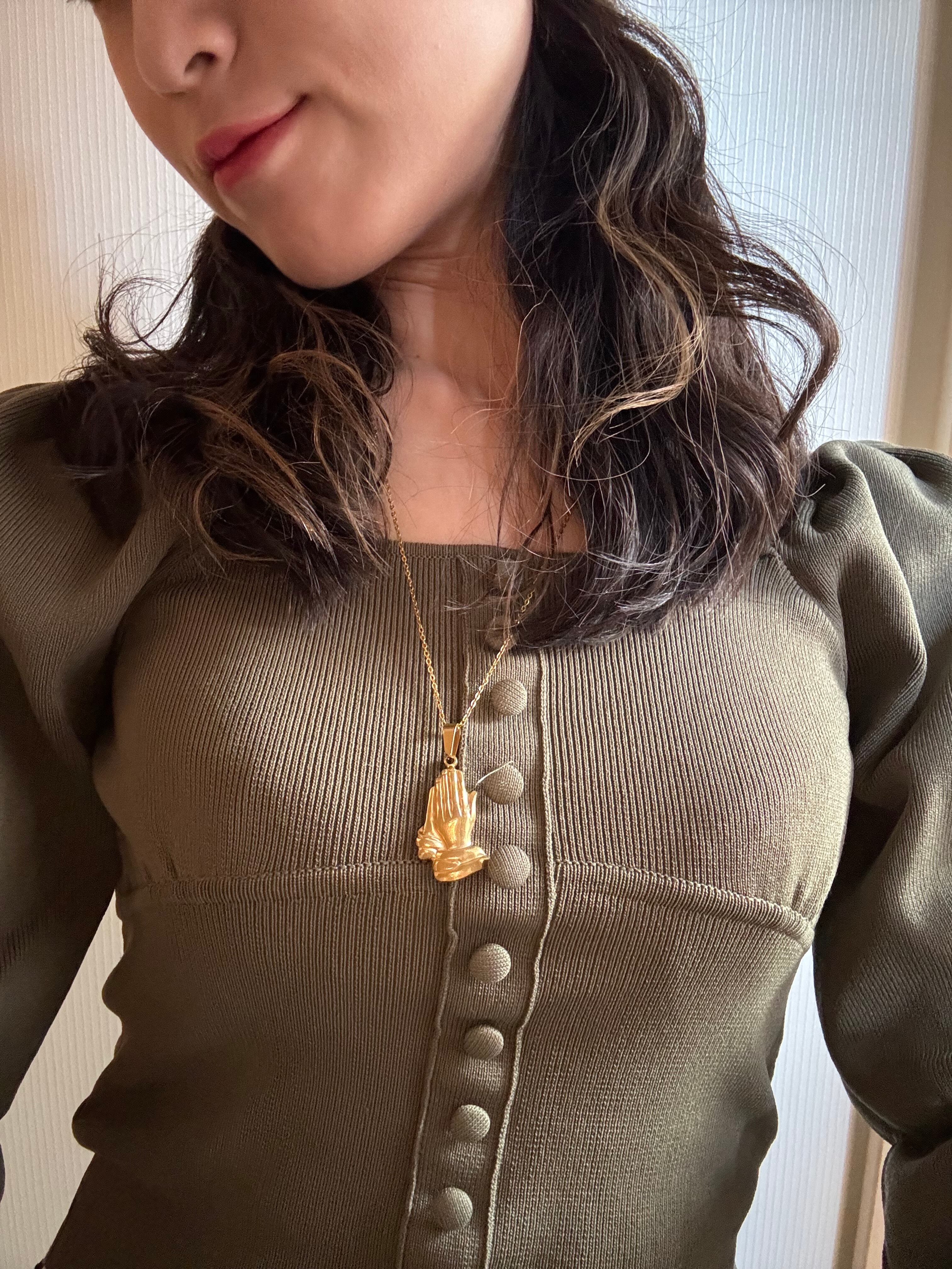 長めのチェーンで、ニットなどと合わせても存在感◎です。