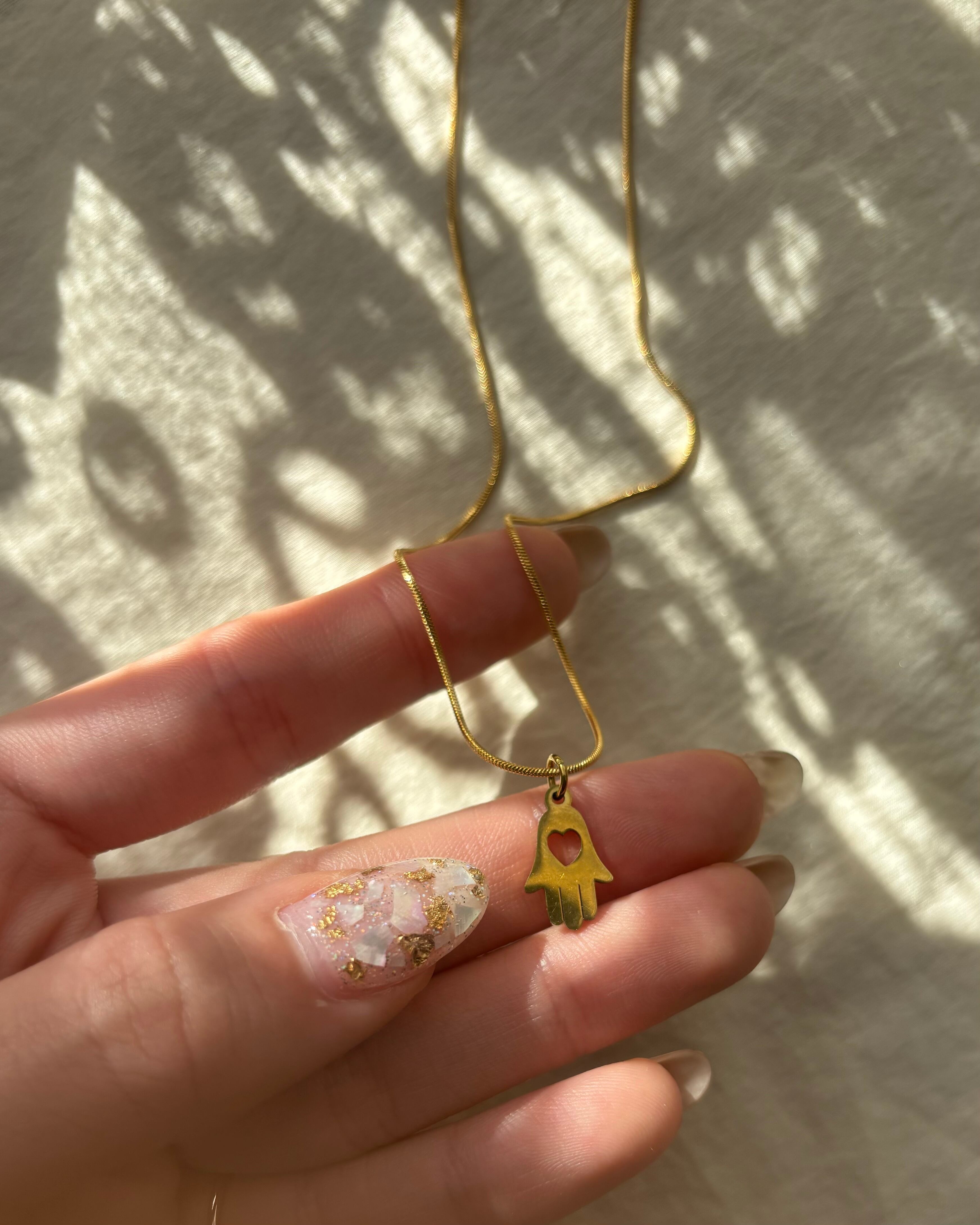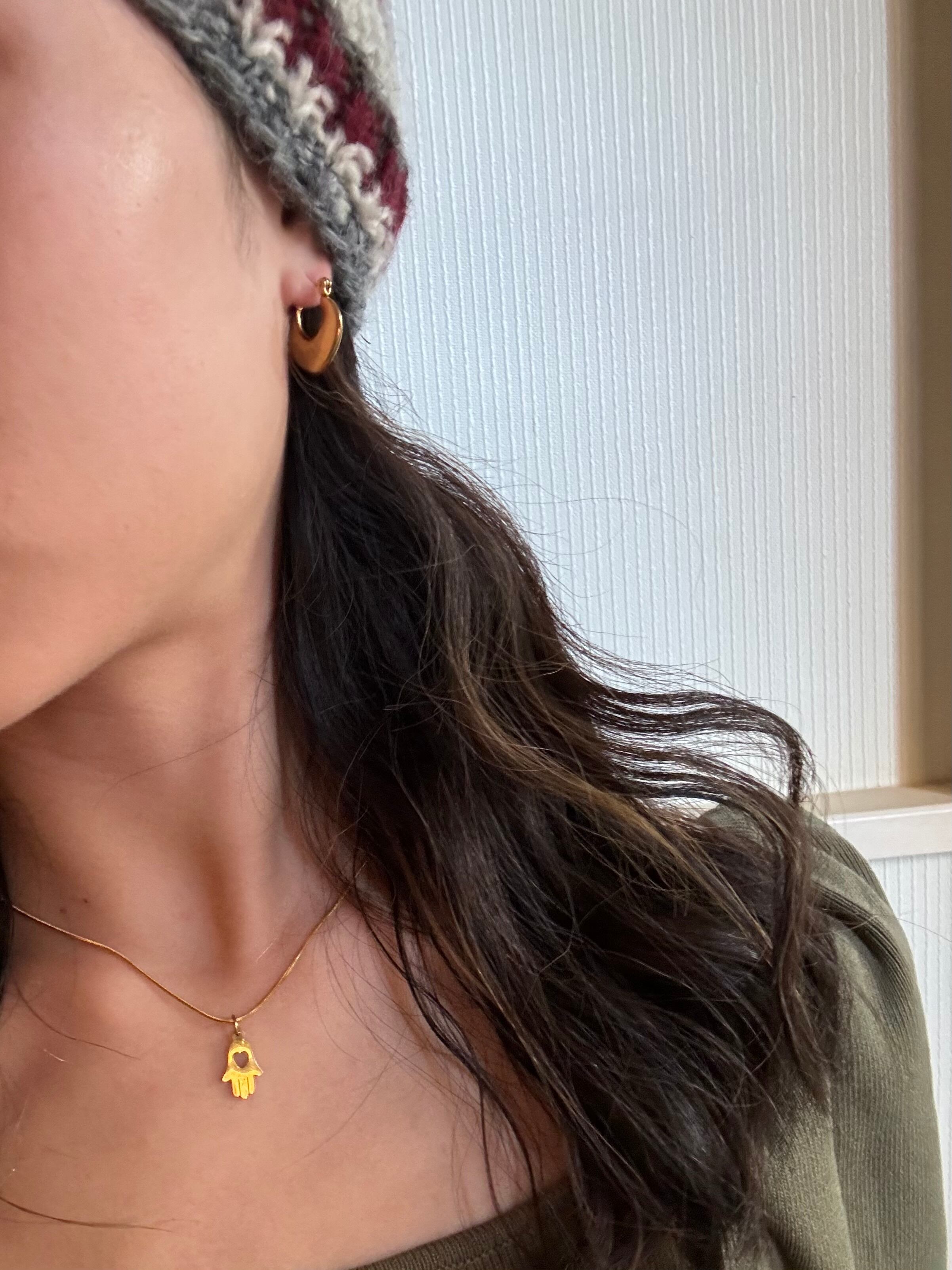 光の当たり方で輝きが変わるフラットチャームがポイント。