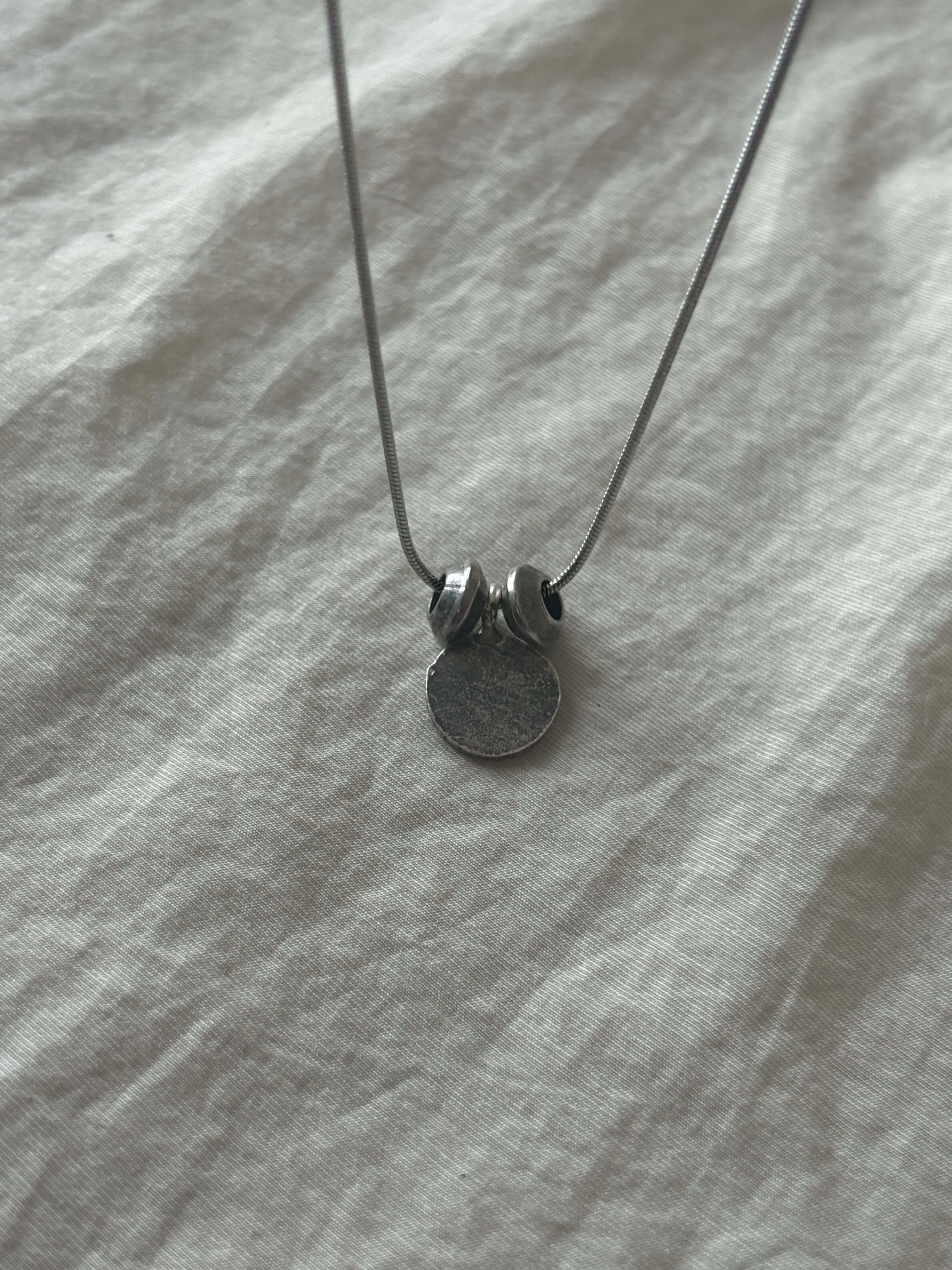 花の刻印のはいったkaren silver plateがポイント。シーズンレスに身につけたいこちらは、シンプル使いも、他のアクセサリーと重ね付けも相性◎