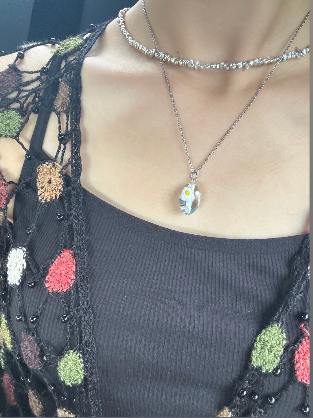 雫の形の360度見え方の変わるチャームがポイントのアイテム。